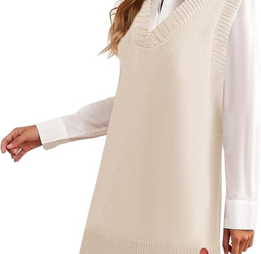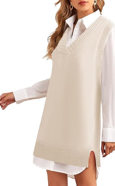 This sleeveless sweater vest dress is a layering essential. Wear it over a long-sleeve turtleneck with tights and boots for a cozy fall outfit, or style it solo with knee-high boots during those in-between weather days.