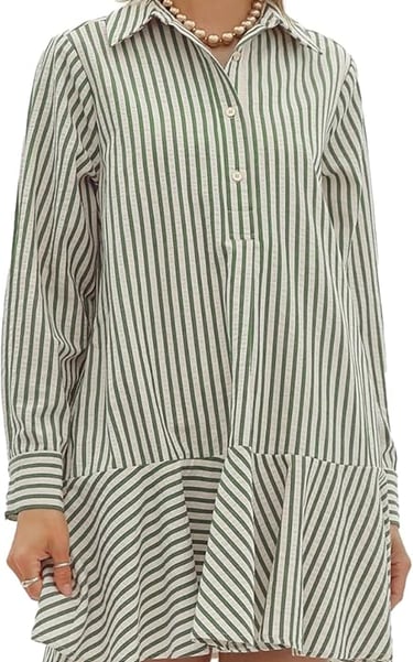 This striped shirt dress is lightweight yet perfect for fall layering. Throw it on with a chunky cardigan, leggings, and boots for a cozy weekend outfit. It’s an Amazon fall wardrobe staple that transitions easily from warm afternoons to cool evenings.