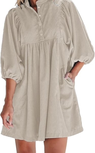 Corduroy and fall are a match made in heaven. This empire-waist babydoll dress with 3/4 sleeves feels casual yet put-together. Pair it with tights and ankle boots for a pumpkin patch photoshoot, or add a denim jacket for an everyday fall look.