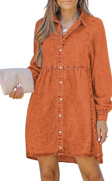A denim dress is timeless, but this button-down babydoll version is especially perfect for fall. Style it with tall boots and a scarf for an effortlessly chic look, or layer it with a cardigan on cooler days. This one’s great for casual Fridays or weekend outings.